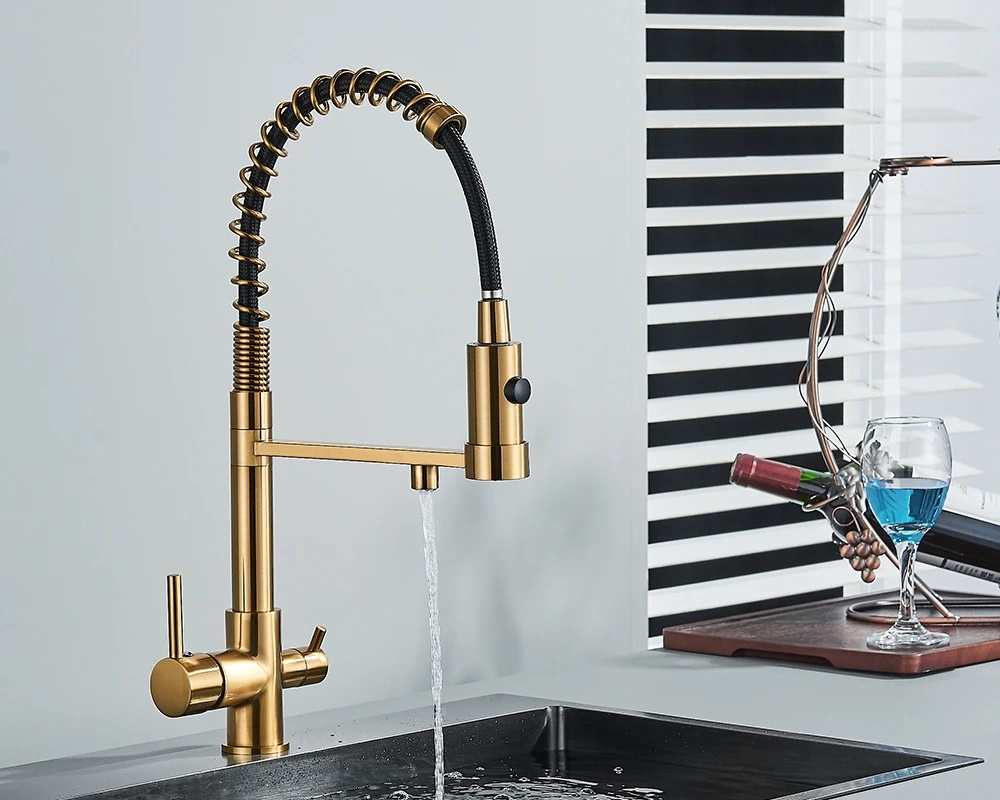 Baterie bucatarie lebada aurie montare chiuveta sau blat functioneaza cu apa calda-rece cu o singura maneta pentru reglarea temperaturii apei calde / reci (monocomanda).