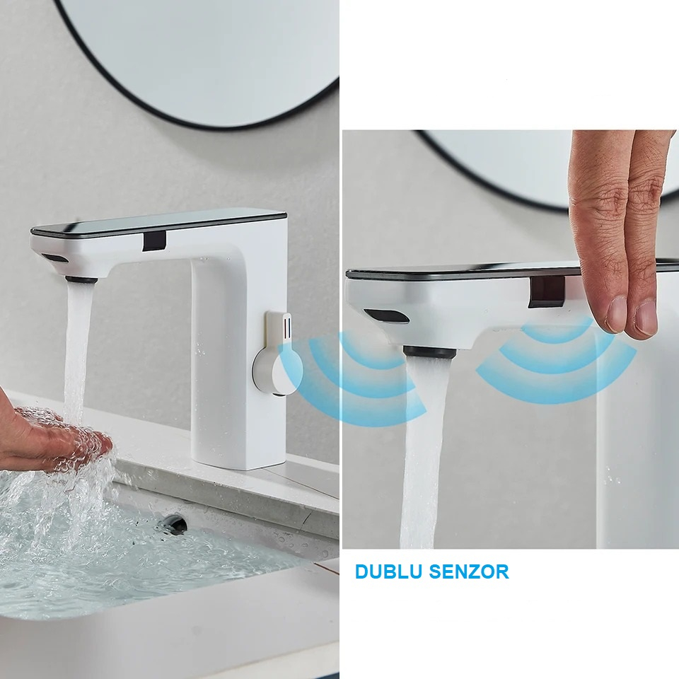 Baterie de lavoar cu senzor de miscare: Odata ce mainile tale se afla in raza de detectare apa se porneste, iar atunci cand indepartezi mainile apa se opreste.