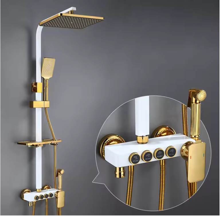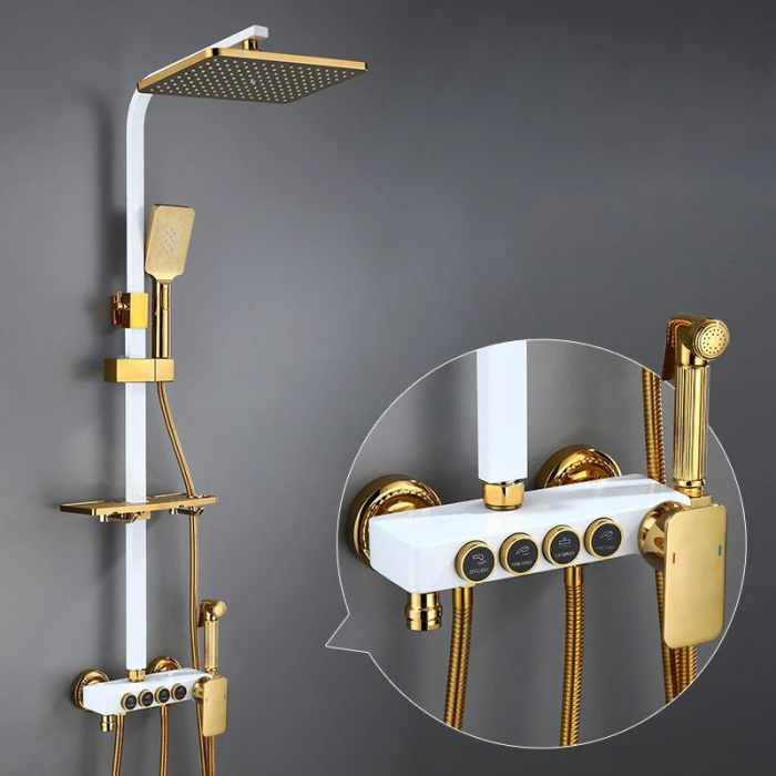 Transformă-ți baia într-un spațiu premium cu această coloană de duș multifuncțională, ce îmbină designul minimalist scandinav cu accente luxoase aurii. Finisajul alb mat este rezistent la petele de apă, păstrându-și aspectul impecabil timp îndelungat.